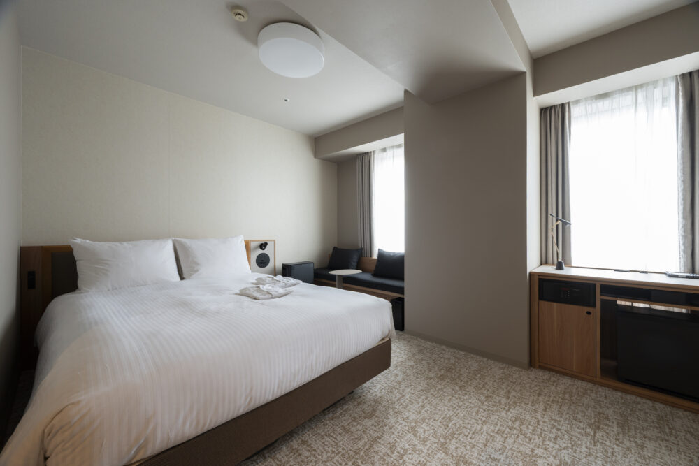 客室は、和の落ち着きと北欧デザインのシンプルさを組み合わせた “ジャパンディ” スタイル。ゆったりとした空間づくりがされており、イベントの余韻をひと息つきながら、気持ちを切り替えるのにちょうど良い雰囲気です。すべての客室にコンセントとUSBポートが備わっているので、スマホやカメラの充電、撮影データの整理もスムーズにできます。