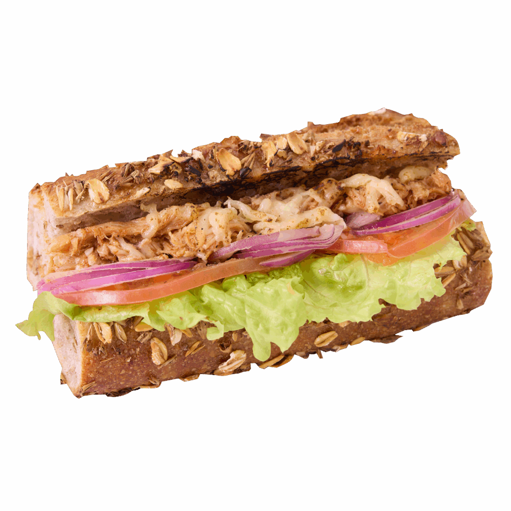 - 商品名:プルドポークと炙りチーズの麦芽粕入りバゲットサンド (テイクアウト:1個 648円、イートイン: